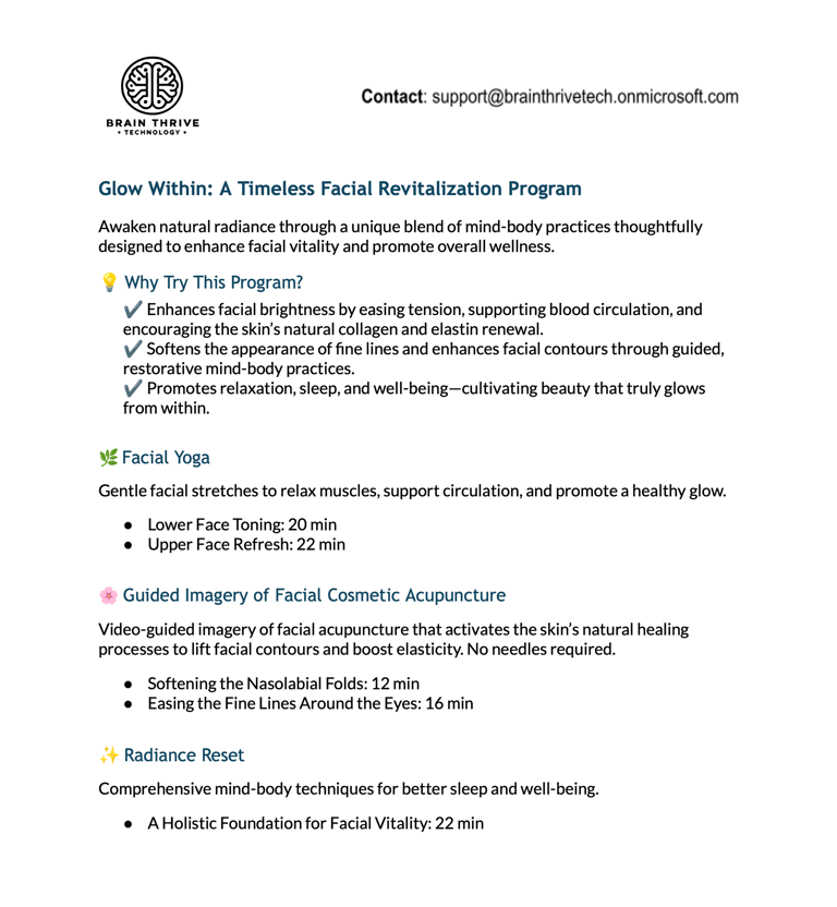 Achieve revitalization through a unique integration of mind-body modalities, thoughtfully designed to enhance facial vitality and promote overall wellness.